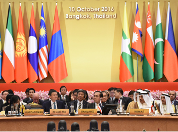Currently, the Bahrain, Bangladesh, Brunei Darussalam, Bhutan, Cambodia, China, India, Indonesia, Iran, Japan, Kazakhstan, Republic of Korea, Kuwait, Kyrgyz Republic, Lao PDR, Malaysia, Mongolia, Myanmar, Pakistan, Philippines, Oman, Qatar, Russia, Saudi Arabia, Singapore, Sri Lanka, Tajikistan, Thailand, United Arab Emirates, Uzbekistan, Vietnam, Afghanistan, Turkey and is awaiting the accession of Nepal as the 34th Member on March 2016 at the 14th Ministerial Meeting in Bangkok, Thailand.